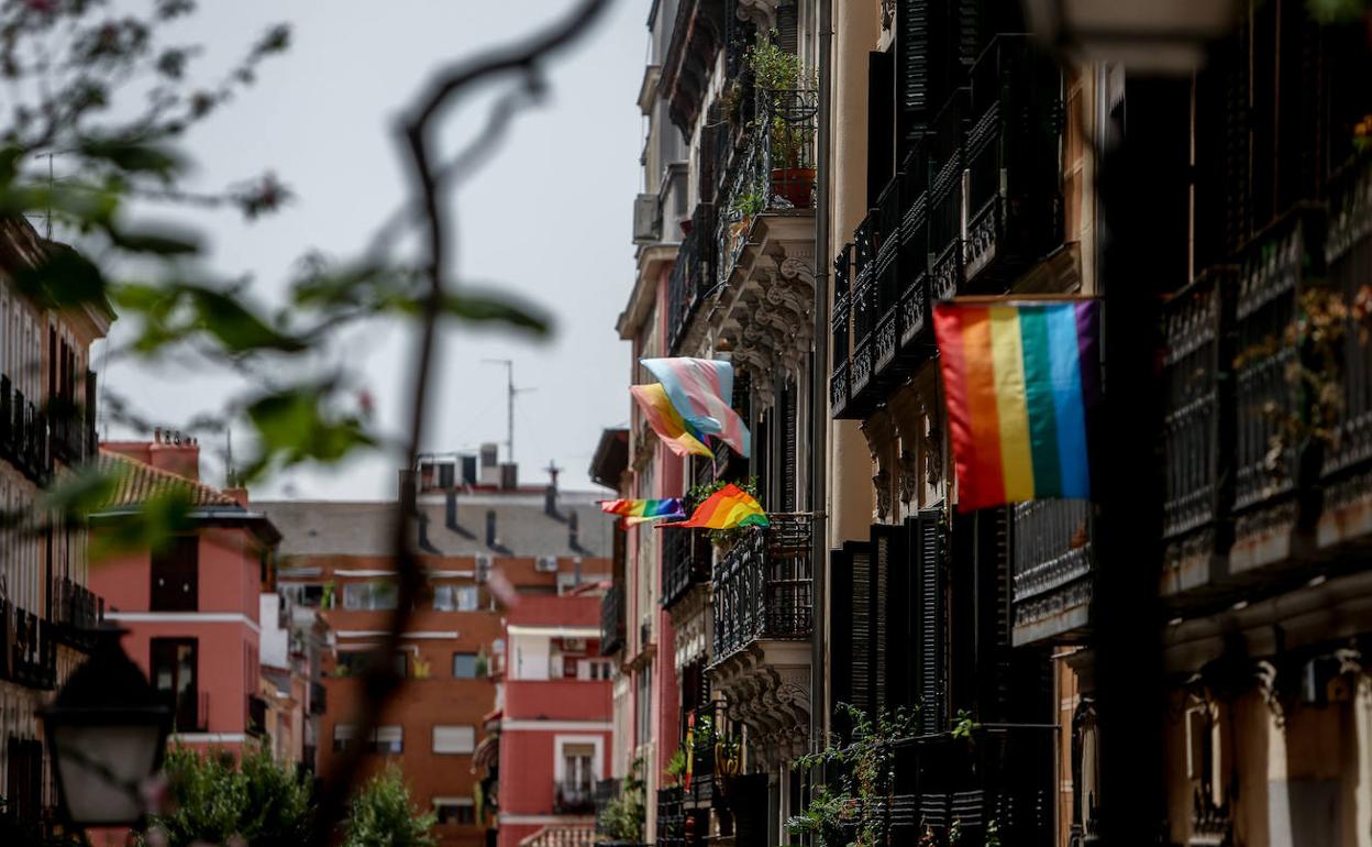 Barrio de Malasaña de Madrid, donde se perpetró la agresión, con la bandera del arcoíris. E. P. /Vídeo: Atlas