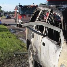 Al llegar junto al coche, Renning vio que la puerta estaba bloqueada y las ventanas no funcionaban. Sin darse cuenta ni de lo que hacía, introdujo los dedos por la rendija de la puerta, hizo palanca con la pierna y dobló el metal hasta lograr crear una apertura por la que salió el hombre atrapado.