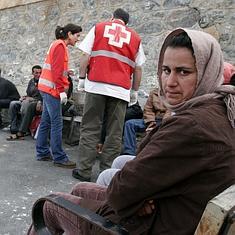 Voluntarios de Cruz Roja prestan asistencia sanitaria en el puerto de Almería.