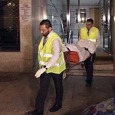 Salida del cuerpo de la mujer asesinada presuntamente por su hijo en Vigo.
