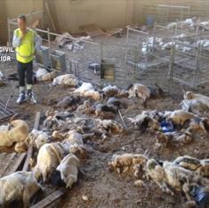Fruto de estas inspecciones en granjas y explotaciones, los agentes se personaron en una granja caprina situada en la comarca oscense de la Litera. Durante el registro e inspección, la Guardia Civil localizó 346 cabras fallecidas por inanición en diferentes estados de descomposición y 36 ejemplares en condiciones deplorables, encerradas sin comida ni agua, por lo que los agentes procedieron de forma urgente a facilitarles alimento.