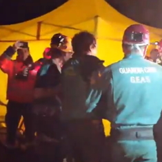 Amigos, familiares y miembros de los equipos de rescate recibieron a su salida a Xisco Gracia, que ha sobrevivido en la oquedad desde el sábado gracias a que había quedado en una zona donde había una bolsa de aire.