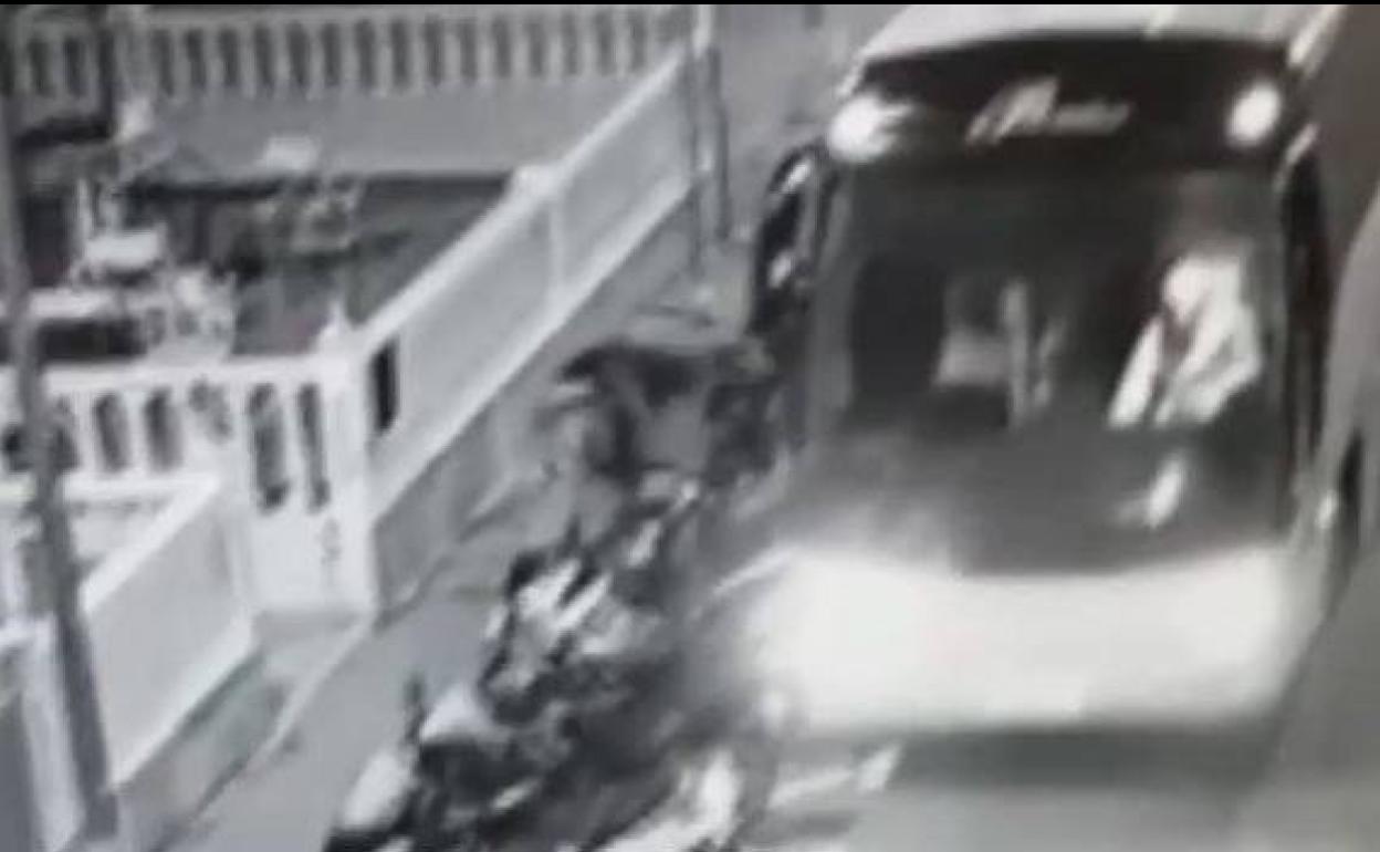 Roba un autobús y arrolla varios coches y motos en su huida