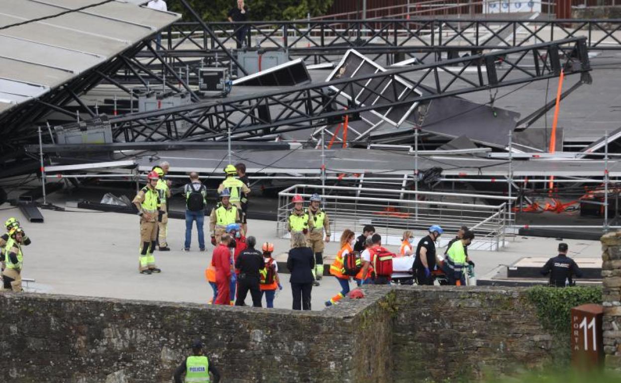 Cuatro trabajadores han resultado heridos en el accidente laboral registrado este viernes en el Monte do Gozo, en Santiago de Compostela, al colapsar el escenario principal en montaje del ciclo de conciertos 'O Son do Camiño'. Uno de ellos ha sido evacuado a un centro hospitalario de la capital gallega en estado grave.