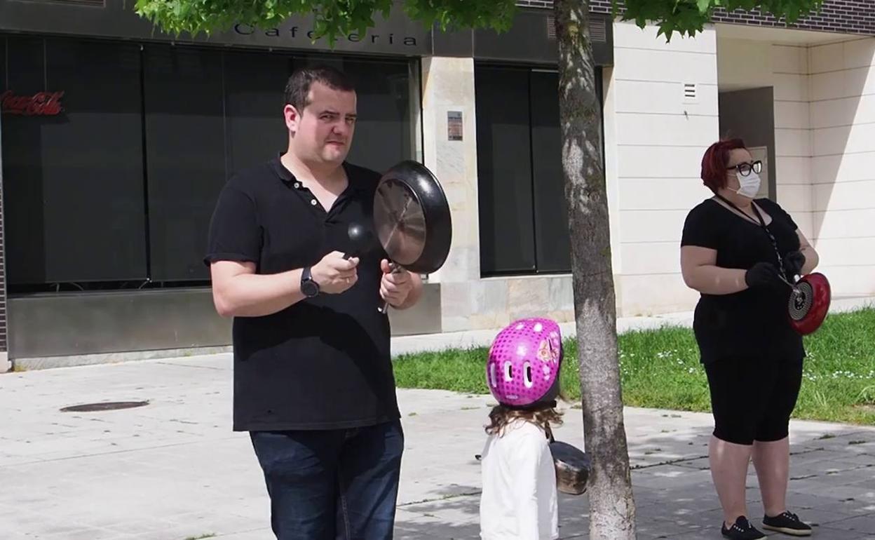 A las 12 horas, hosteleros y vecinos, que no dudaron en solidarizarse, hicieron esta cacerolada a favor de introducir mejoras en el plan de la hostelería.