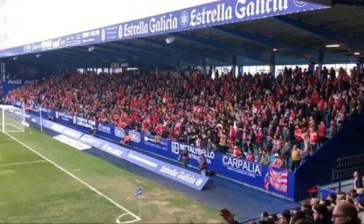 La afición del Sporting, incondicional con su equipo en Ponferrada