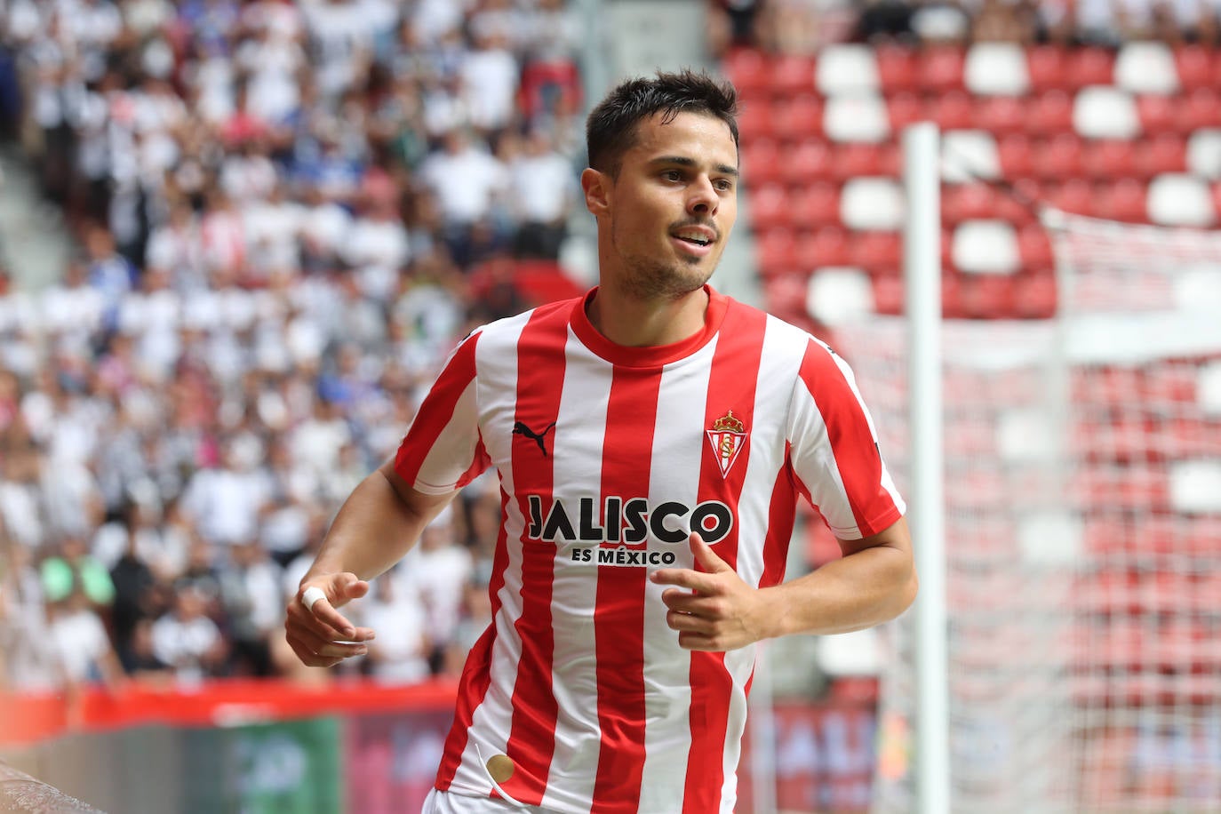 La pasada campaña Gaspar Campos hizo siete goles con el Burgos, los mismos que lleva esta temporada. El máximo goleador del Sporting ha jugado quince de los dieciséis partidos de Liga.