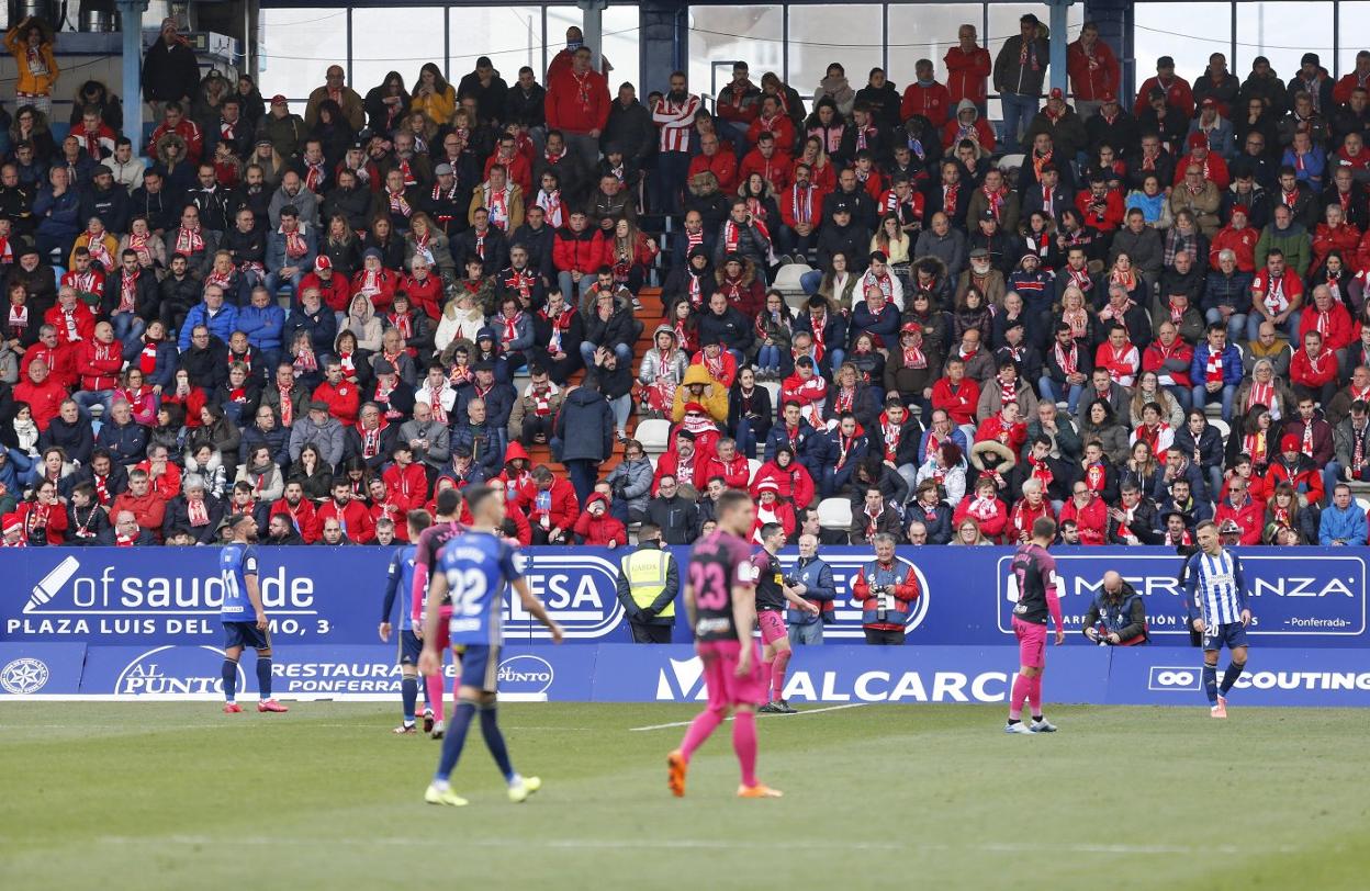 El estadio de la Ponferradina registró un lleno casi absoluto. Por la mañana, el club berciano anunció que pondría a la venta en taquilla las últimas cien entradas a partir de las 15 horas, con un máximo de dos por persona. Minutos después comenzó a formarse una cola con mayoría de aficionados sportinguistas. Cuando el autocar rojiblanco llegó a El Toralín -con Babin en la expedición pese a encontrarse lesionado- había cerca de cien seguidores esperando por la apertura de las taquillas.