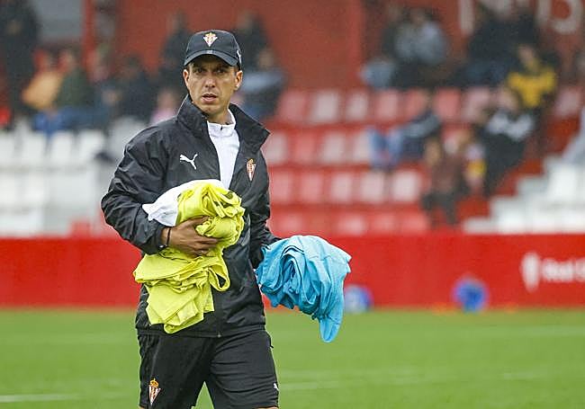 Dialogante, participativo e intenso: el primer día de Borja Jiménez como entrenador del Sporting de Gijón