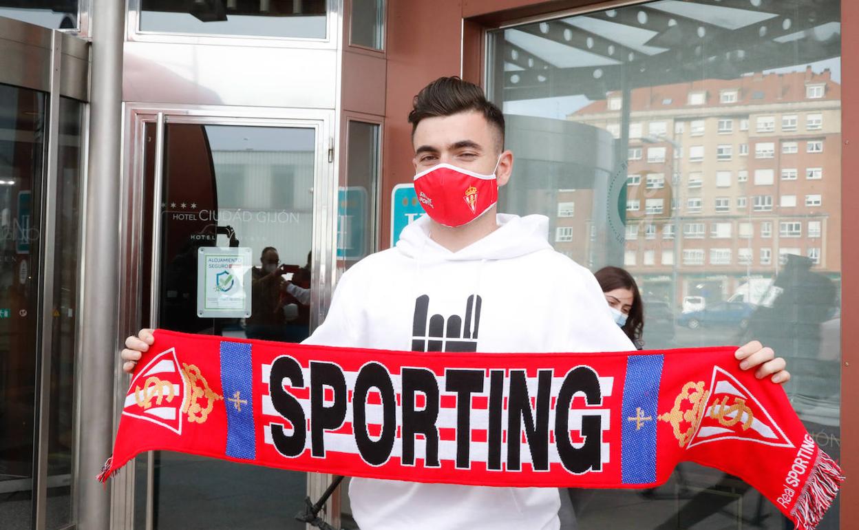 El delantero se mostró «encantado» de su llegada al Sporting para, según dijo en una breve comunicación, «ayudar al equipo en lo que haga falta y a conseguir el objetivo de que el equipo suba a Primera División».