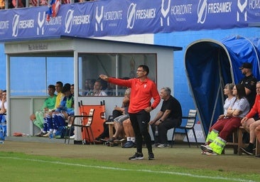 El hueco del canterano lo aprovechó un voluntarioso Dani Queipo, que formó en el cuarteto ofensivo junto a Gelabert, Dubasin y Otero. De las botas del cangués salió la mejor ocasión de los rojiblancos en el primer acto. Regate hacia dentro y su tiro, tras besar la cepa del poste, se perdía por la línea de fondo de la meta defendida por el meta Ángel Jiménez.
