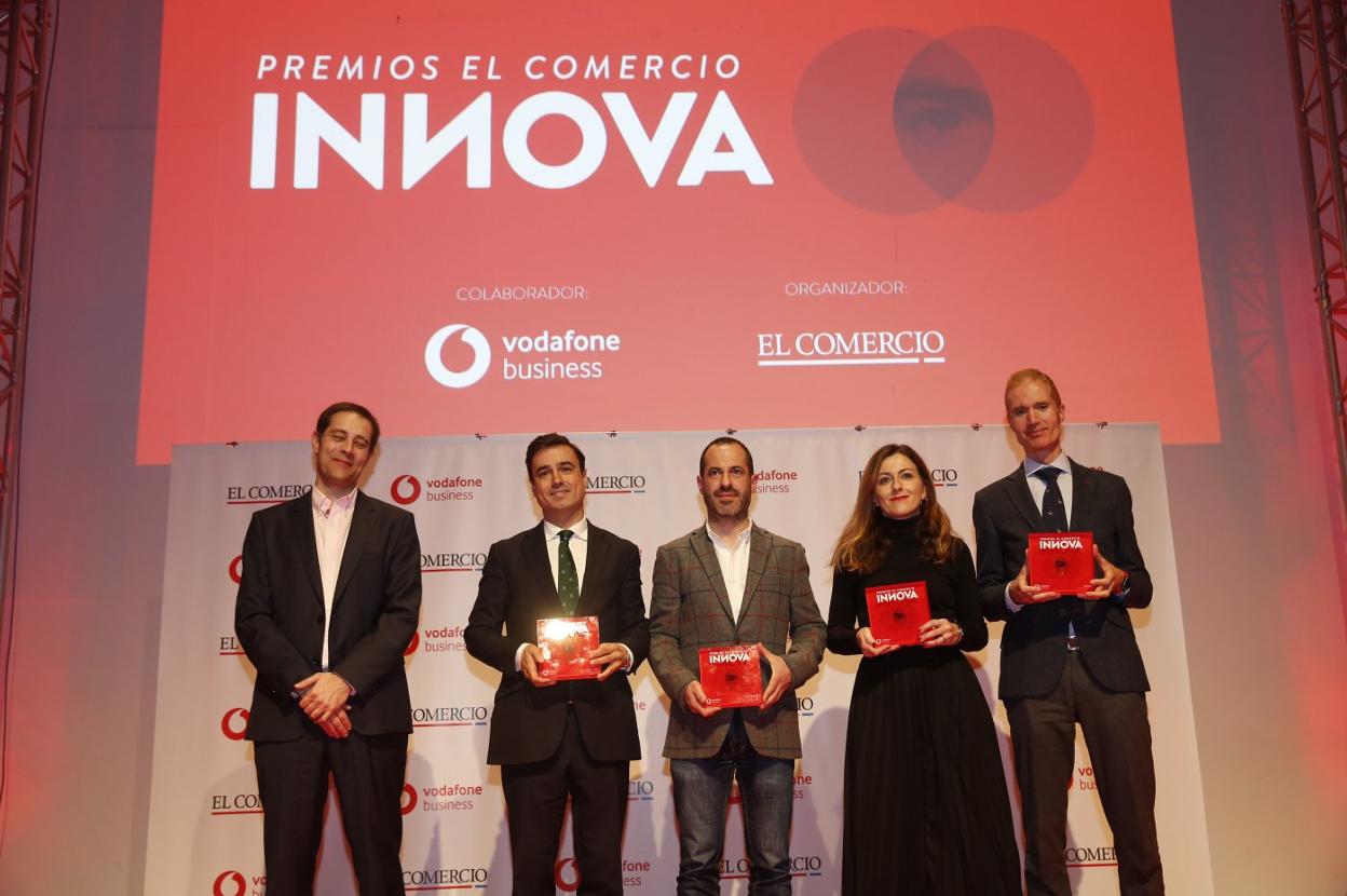 Una «gran fortaleza» que tiene Asturias es la elevada cifra de empresas que han hecho los deberes en innovación. Lo destacó ayer el consejero del ramo, Borja Sánchez, en los II Premios Innova que organiza el diario EL COMERCIO en colaboración con Vodafone. Una cantera que «merece ser distinguida», como apuntó el director del periódico, Marcelino Gutiérrez, y que contó con cuatro representantes de excepción. No solo del sector empresarial, puesto que además de Alimerka, el Grupo Baldajos y CAPSA, recibió su premio el Ayuntamiento de Siero. Un potencial innovador que cuenta con «la reivindicación, el reconocimiento y el respaldo» de los organizadores de los premios y de los numerosos representantes del ámbito empresarial, político y social que se congregaron en Laboral Centro de Arte. Valorar este talento es ahora más importante que nunca debido «al momento de profunda transformación» en el que se encuentra el mundo entero. De cara a lo que se avecina, «quienes van por delante, como los cuatro premiados, resultan imprescindibles», subrayó el director del diario.