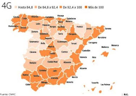La CNMC (Comisión Nacional del Mercado de la Competencia) facilita estos mapas en los que se puede ver el alcance de la cobertura de redes 3G y 4G en España por provincias. De acuerdo con los datos proporcionados por los operadores móviles con red propia, el 99,6% de la población española se encontraría cubierta por al menos una red de tercera generación, ya fuese a través de tecnología UMTS o HSDPA. Eso sí, en el caso de coberturas con plataformas 4G, Madrid y Barcelona, presentan coberturas superiores a las del resto del territorio. A finales de septiembre, el gobierno aprobaba el Programa Nacional de Extensión de la Banda Ancha de Nueva Generación (PEBA-NGA), Programa Nacional de Extensión de la Banda Ancha de Nueva Generación (PEBA-NGA), que busca acelerar la extensión de la cobertura de las redes de banda ancha de más de 100 Mbps en las zonas sin cobertura actual ni prevista en los próximos tres años. Se espera que se beneficien 1.248.548 hogares y empresas de 4.168 poblaciones.