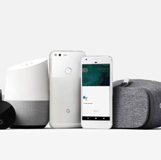El Google Home junto a un móvil Pixel, dos de las últimas innovaciones de la empresa.