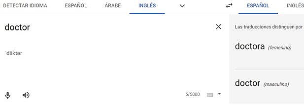 Del mismo modo, en la traducción de palabras como 'fuerte' o 'doctor', que en otros idiomas tienen la misma forma tanto en femenino como en masculino -'strong' o 'doctor', en el caso del inglés- solo se traducía a la forma masculina.