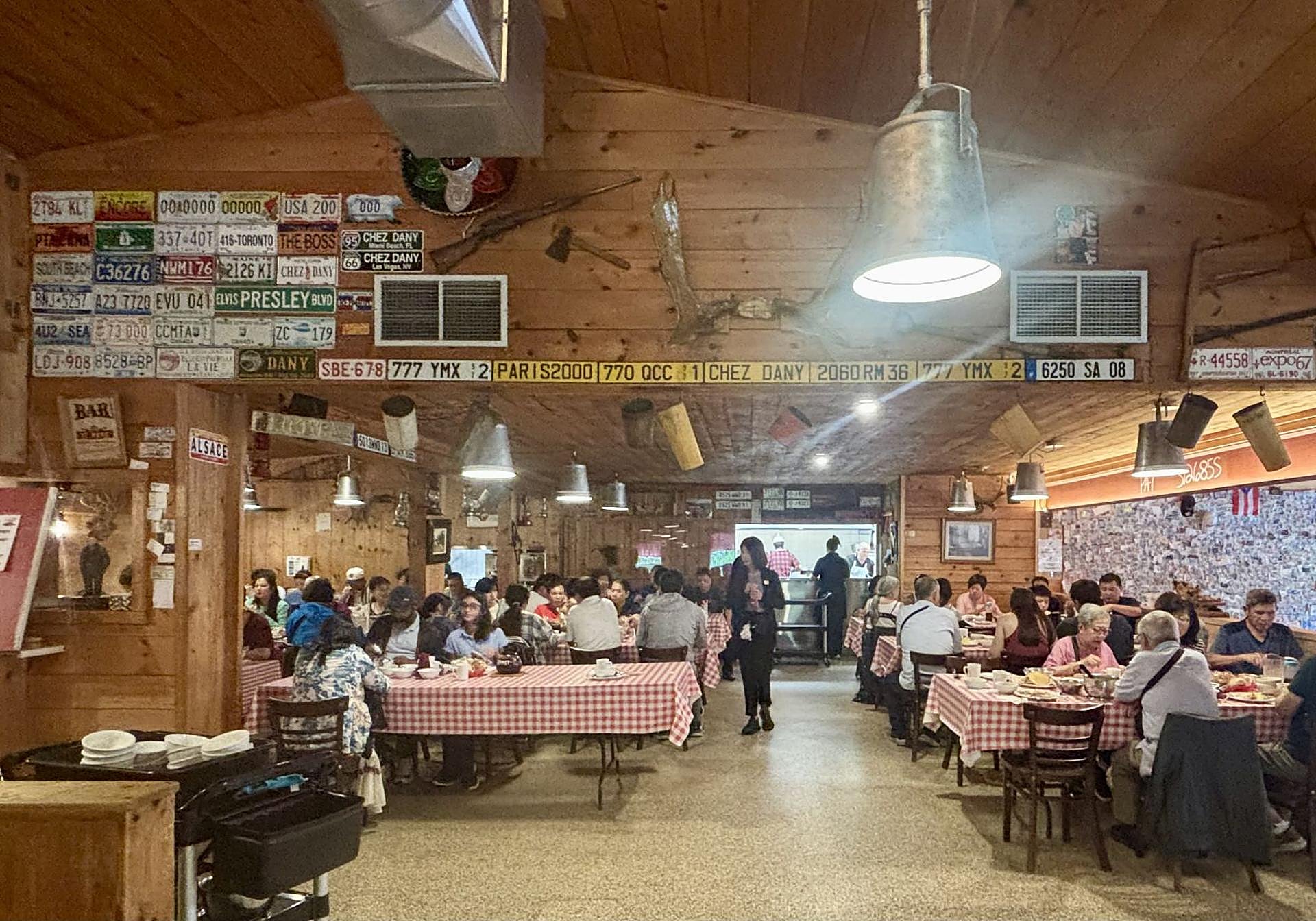 Con el sabor inmundo todavía en la boca, un hombre se dirige hacia un teclado que hay en el centro del local. «Con la turra que dan los quebequenses con la herencia francesa, irá a tocar 'La vie en rose'», pienso. De nuevo me equivoco, porque el tipo se desmelena con temas que a mí me suenan a 'country'. Mientras que algunas camareras se sientan a tocar una cuchara musical, la versión canadiense de las castañuelas, otras reparten el instrumento entre los comensales. A mi santo le toca cuchara, y sigue la música con acierto. Yo declino la oferta, que en la vida he sido capaz de tocar otra cosa que no sean las narices.