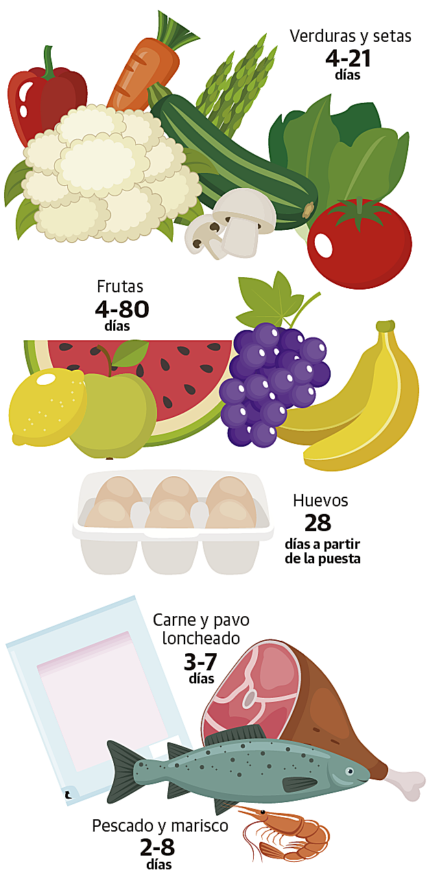 Eso que los expertos llaman la vida útil de los alimentos –lo que duran en buenas condiciones– tiene su aquel. Para empezar, antes de hacer la compra tenemos que tener muy claros dos conceptos fundamentales que muchas veces confundimos: la fecha de caducidad y la fecha de consumo preferente. Pueden parecer lo mismo, pero no lo son. Coloquialmente se suele hablar de la fecha de caducidad de los alimentos, sin embargo, en la gran mayoría de los productos que compramos a diario en el supermercado lo que nos indica la cifra impresa en el envase es una recomendación de consumo preferente. Es decir, que a partir del día que pone la etiqueta ese producto puede dejar de estar en óptimas condiciones de sabor y textura pero es apto para el consumo. «El 99,9% de los alimentos que compramos son seguros y las fechas están estudiadísimas por los fabricantes para ser lo más exhaustivas. Ahora bien, el consumidor tiene que tener unas nociones básicas en el manejo de los alimentos para evitar contaminaciones cruzadas», alerta Javier Pérez, responsable de Bioensayos del Centro Nacional de Tecnología y Seguridad Alimentaria (CNTA). Pone un ejemplo. «Si estoy manipulando pollo y después toco las hojas de la lechuga de la ensalada sin haberme lavado las manos puedo estar transmitiéndole elementos contaminantes». Y concluye con la regla de oro: «Todo aquello que ni huele ni al comerlo sabe como debería, lo mejor es tirarlo a la basura».