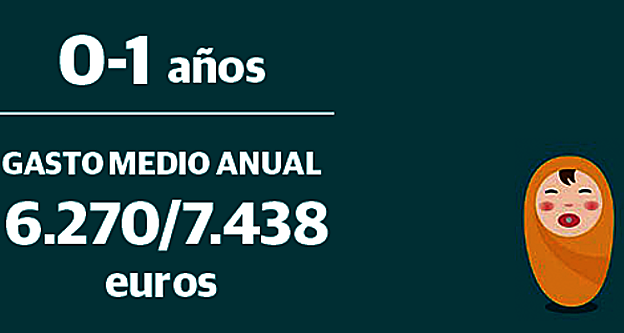 El gran desembolso se hace antes de que nazca el bebé. Los padres tienen que tener todo preparado: desde la cuna hasta el cambiador o la silla de seguridad para el coche. El capítulo de la alimentación dependerá de si se opta por la lactancia materna (normalmente, una media de 4 o 5 meses, hasta que la madre se incorpora al trabajo después del permiso de maternidad). Empezarán entonces a comprar las leches adaptadas, a un precio medio de unos 12 euros por tarro, aunque las hay hasta de 20 euros. La partida estrella se la llevan los pañales y los productos de higiene para bebés. La oferta de productos se ha disparado, así que serán los padres y el sentido común los que decidirán dónde poner el freno.
