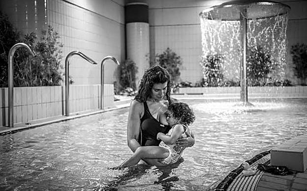 Para hacer la foto tuvieron que pedir permiso a los responsables de la piscina de Portugalete, aunque Noelia González, de 34 años y madre de Nerea (2), no pregunta. «Cuando un niño tiene que comer, tiene que comer, estés donde estés. ¡Pero si hay gente que todavía no se acostumbra a verte dar el pecho por la calle!». Ella lo hace cuando lo pide la niña, con la que le une un vínculo «muy especial». «Amamantarla te acerca mucho a tu hija, yo se lo recomiendo a todo el mundo. Es sacrificado, pero las compensaciones son mayores que el sacrificio». Lo del sacrificio suyo va para 23 meses. «Duerme con nosotros y de noche toma pecho cada dos o tres horas. No es por hambre, pero veo que es algo que ella necesita y yo estoy a gusto. Es el momento de ella y de nadie más».