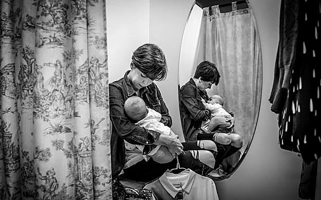 «El primer mes fue durillo. Te duele todo, te sientes insegura, no sabes si lo estás haciendo bien». Aunque a juzgar por la carita que pone Julia (6 meses) su madre, Elena Moreira, gallega de 38 años y residente en Amurrio desde que nació la niña, lo está haciendo fenomenal. Se fotografían juntas en el probador de una tienda de ropa de Bilbao. «Aunque es una foto, la imagen es bastante realista, yo le doy en pecho en cualquier cafetería. Tengo suerte de que es una niña muy tranquila que no me monta nunca el espectáculo. Cuando amamantas a tu bebé no estás molestando a nadie, así que lo prolongaré lo máximo posible», cuenta Elena y sigue a lo suyo. A lo de las dos: «Julia es super sonriente, un regalo».
