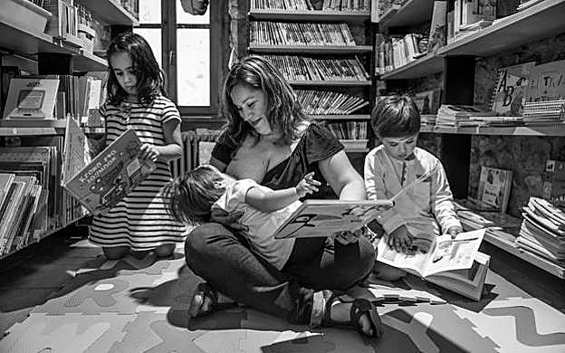 Todos los martes Nagore Núñez (34 años) pasa la tarde con Seima (6), Udai (4) y Aure (18 meses) en la biblioteca de San Miguel de Basauri porque hay cuentacuentos. Muchas veces le da allí de mamar a la pequeña, que no da «apenas guerra con la teta» y deja a su madre dormir toda la noche. Dice que cuando deje de amamantar a la niña no lo va a vivir como un drama, pero prisa... ninguna. «Cuando son bebés la gente te dice: '¡Qué bonito!'. Pero en cuanto empiezan a andar ya todo el mundo empieza a opinar y le dicen a la niña cosas como: 'Deja a tu madre en paz'. Así que hay madres que se esconden para dar el pecho a sus hijas para que no les vean. Yo no, le doy cuando pide, esté donde esté, y nunca pido permiso para hacerlo porque sé cómo va el asunto». Lo dice por experiencia: «El día que le hicieron los agujeros de la oreja en la farmacia la niña lloró un poco y le di el pecho para que se calmara. Pero la dependienta me dijo: 'Ahí enfrente tienes un bar para darle de mamar'».