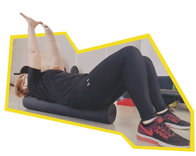 Ejercicio de activación que favorece la circulación en los brazos. Abrir y cerrar los dedos con la espalda colocada sobre un rulo (foam roller).