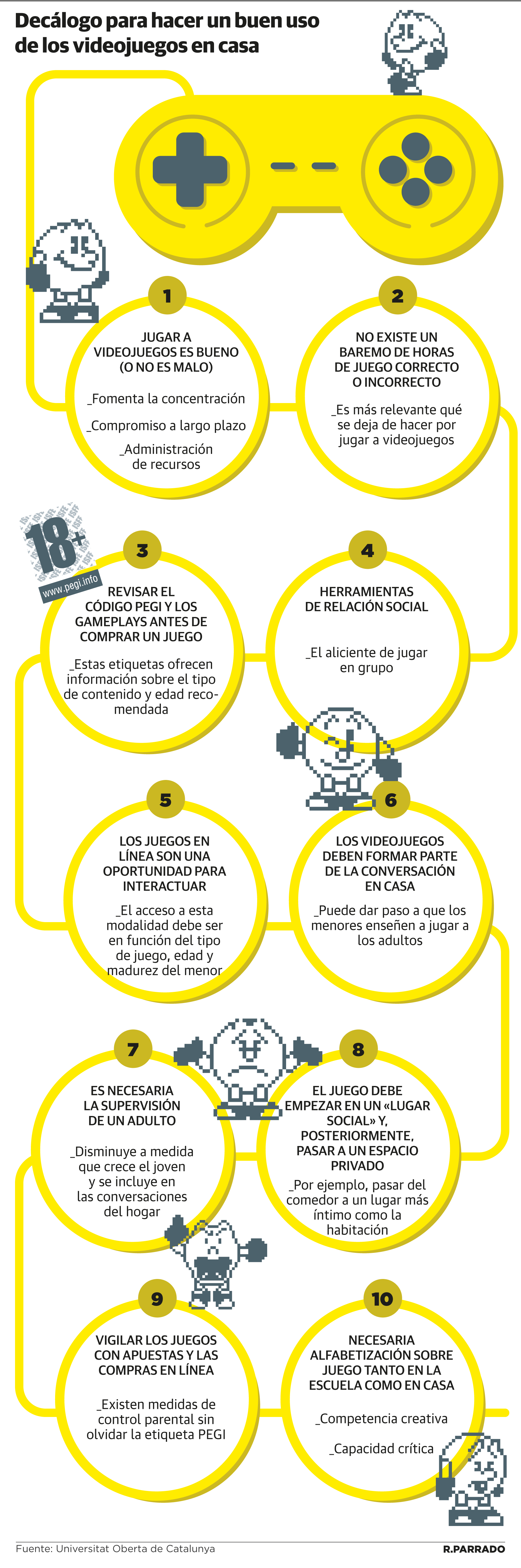 No debemos olvidar que el ocio de los más jóvenes es, en gran medida, digital. Por lo que también lo es en estos días de cuarentena en los que su socialización se reduce a las pantallas. Unas pantallas que, queramos o no, les ayudan a seguir en contacto con sus amigos. En este sentido es importante que no olvidemos las cuatro coordenadas a la hora de educar en digital: tiempo, lugar, compañía y contenido. Hay que cuidar el tiempo de exposición a los videojuegos, que sea complementario de otras actividades (lectura, pintura, cocina...). También es mejor jugar en un lugar común de la casa y evitar que sea en su habitación, puesto que en familia se disfrutan mucho más los videojuegos que si el juego es individual. Y ojo con los contenidos. Los padres debemos de conocer el código PEGI de los videojuegos que les gustan a nuestros niños. Es el momento de dedicar tiempo a leer reseñas y artículos sobre los videojuegos que hacen vibrar a nuestros pequeños. Sin duda, tenemos una oportunidad como padres. Este tiempo nos puede llevar a conocer mejor a nuestros hijos, saber qué les gusta, cómo reaccionan cuando ganan o pierden en los videojuegos. Jugar con ellos hará que podamos conectar más con sus gustos en la red y pasar a ser de verdad interlocutores válidos e intentar coser esa brecha digital que muchas veces nos separa de ellos.