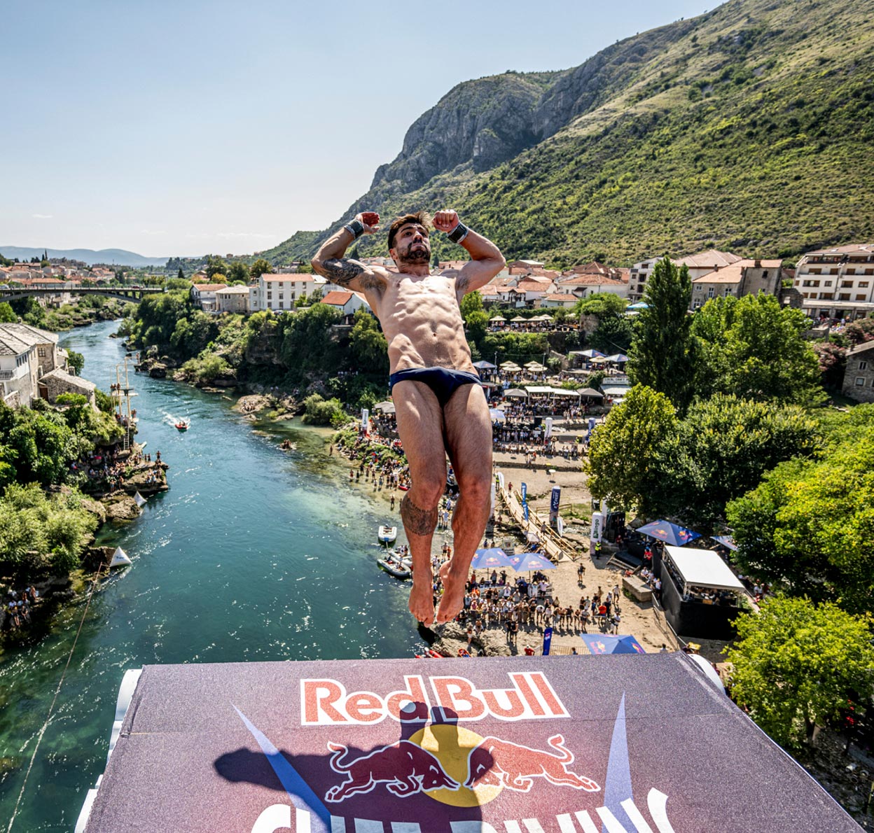 Un lugar único. Las Series Mundiales de Salto de Acantilado Red Bull en Mostar atraen a varios miles de espectadores y no hacen más que aumentar la creciente popularidad de un paraje natural único. |© Romina Amato/Red Bull