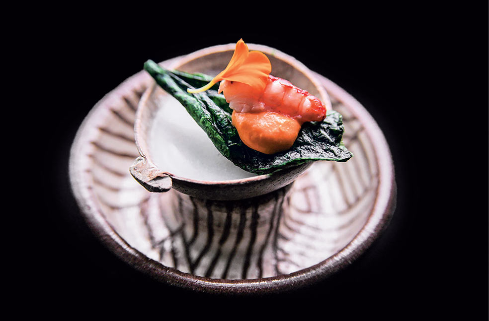 Langostinilla con limón mandariono y 'basket pepper', acompañado de leche de coco