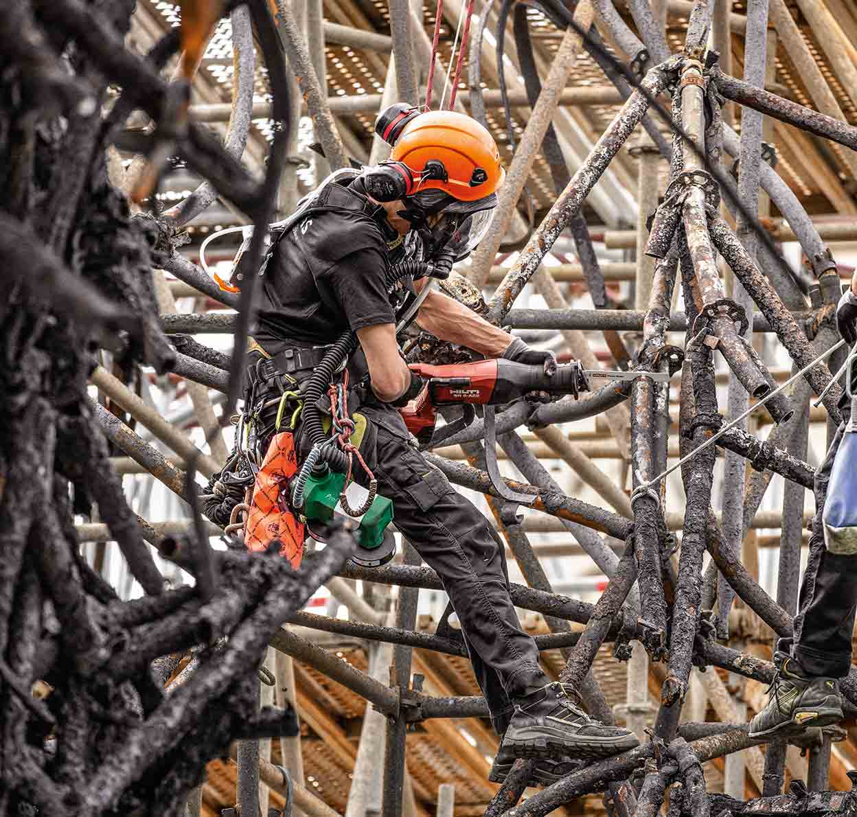 Fueron los encargados de desmantelar un inmenso bosque de andamios de acero en la nave central de Notre Dame, a veces jugándose la vida a grandes alturas y en posturas imposibles. Por eso los llamaron “las ardillas”. Empezaron su labor en 2020, un año después del incendio. Ahora, gracias a ellos, la catedral está salvada.