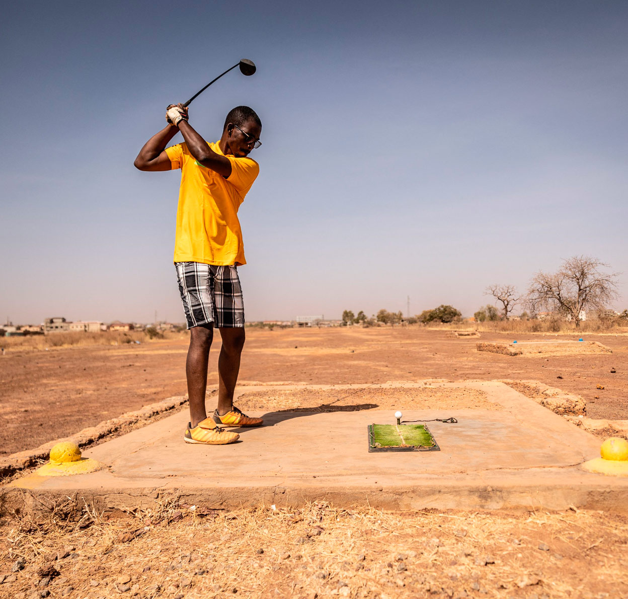 El campo burkinés, por lo tanto, no necesita las ingentes cantidades de agua que ‘chupan’ estas instalaciones: unos 5000 metros cúbicos de agua diarios, el consumo medio de unas 12.000 personas. Porque aquí no se finalizan los recorridos sobre un green (verde), sino sobre un brown (marrón), el color de toda su terrosa superficie. En el tee de salida, eso sí, los jugadores dan el primer golpe sobre un trozo de hierba, artificial por supuesto, único verdor que verán en sus áridos 18 hoyos, par 72, con casi 10 kilómetros de recorrido. Certificados todos ellos por la Federación Francesa de Golf. En un país que sufre como pocos las consecuencias del cambio climático, quizá pueda acabar sirviendo de referencia para el resto del mundo.