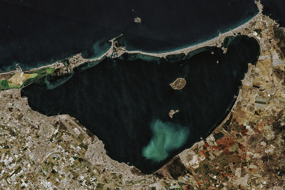 Esta mancha blanca en el mar Menor, solo visible desde el cielo, fue detectada en 2022 y hoy ocupa el 10 por ciento de la maltrecha laguna. Las imágenes del satélite Aqua ayudaron al Instituto Español de Oceanografía a resolver su origen: la descarga submarina de carbonato cálcico de un acuífero contaminado por nitratos agrícolas.