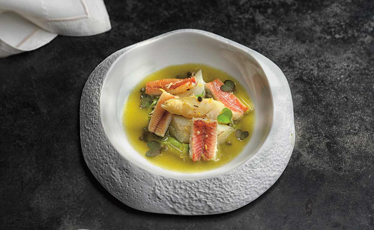 Por último, esparce la ralladura de limón y unas alcaparras y termina con algunos brotes de las hierbas utilizadas para hacer la salsa.