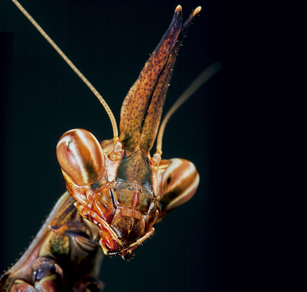 Las mantis son un grupo de insectos que cuenta con más de 2.200 especies distribuidas por todo el mundo en la franja tropical y las áreas templadas. Aunque en Europa viven alrededor de doce especies, por lo general sólo conocemos a la mantis religiosa. El resto pasa inadvertido gracias a su capacidad de camuflarse entre la vegetación. Esto, junto con su aspecto extraño, mezcla de alienígena y robot cibernético, ha convertido a esta familia de insectos en una gran desconocida para el hombre y ha despertado nuestros miedos y supersticiones.