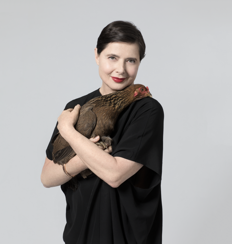 Cuando eres una señora mayor como yo, haces lo que te viene en gana», bromea la leyenda del cine Isabella Rossellini. Dicho y hecho, Rosselini saca un cartón con huevos del bolso. «Mira qué bonitos son. Con formas distintas, tamaños diferentes... ¿Cómo se explica que los del súper sean todos idénticos? [Se ríe]. ¿Han logrado que todos los agujeros del culo de las gallinas sean del mismo diámetro?».