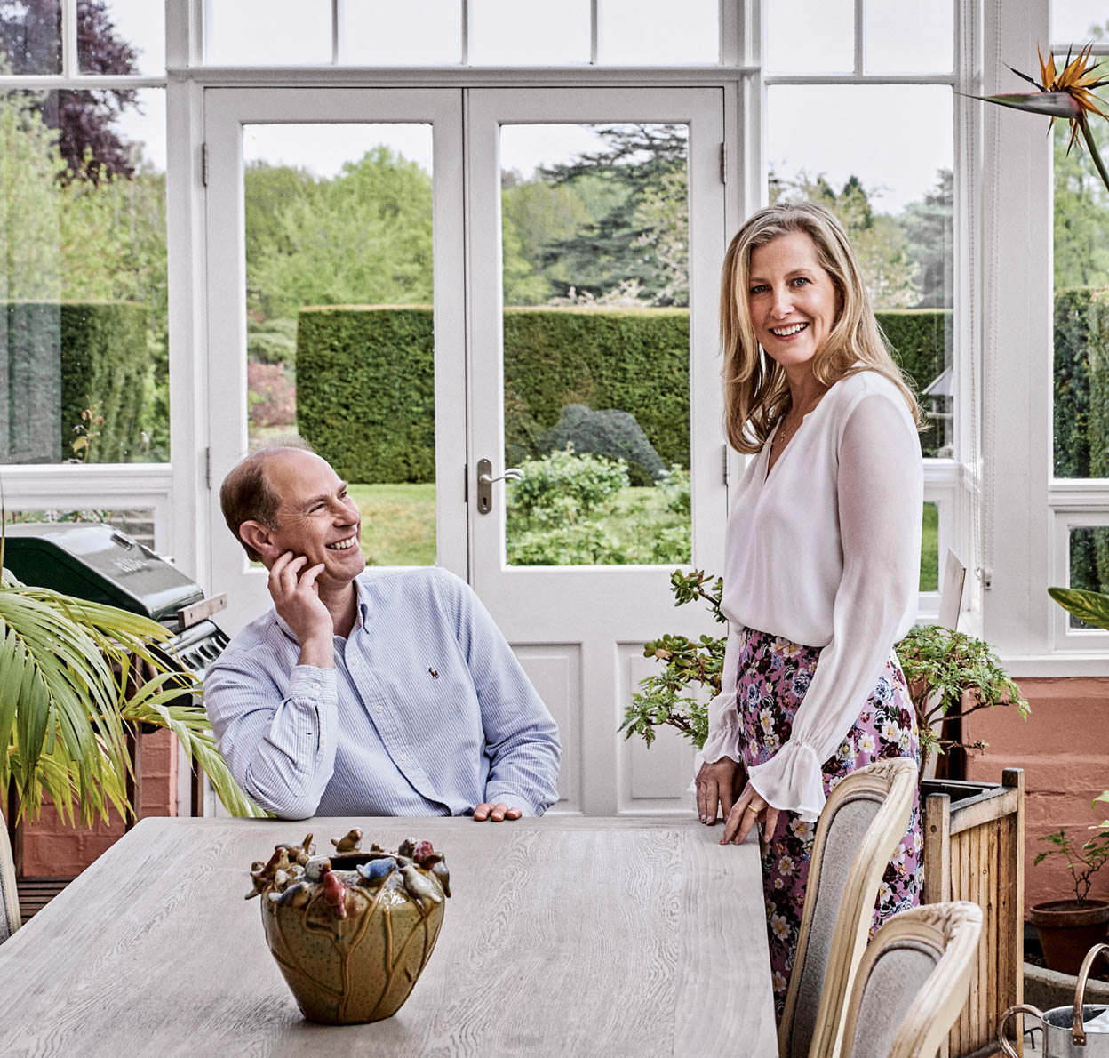 Sofía, la condesa de Wessex, me cuenta lo que tengo que hacer para arreglar el maltrecho seto de mi jardín mientras su marido, el príncipe Eduardo, sirve el té. «No haga caso a los perros –dice el hijo menor de la reina de Inglaterra–. Están como un cencerro», bromea al ver que Mole, el cocker de la familia, se sube a su regazo. En paralelo, Teal, el labrador, se pone a juguetear con la planta de mi pie.